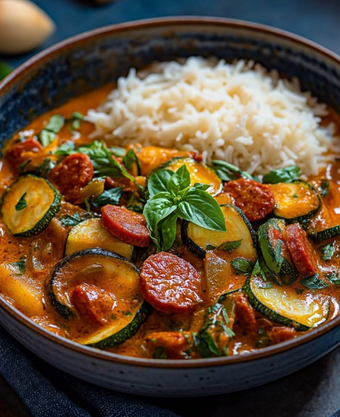 **Ingrédients : – 2 courgettes moyennes, coupées en rondelles – 100 g de chorizo doux ou fort, tranché finement – 1 oignon, émincé – 2 gousses d’ail, hachées – 200 …